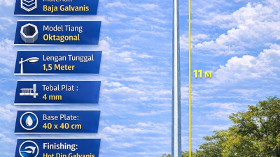 Jual tiang PJU 11m oktagonal single parabole Demak menjadi solusi tepat untuk kebutuhan penerangan jalan yang merata, kuat,…