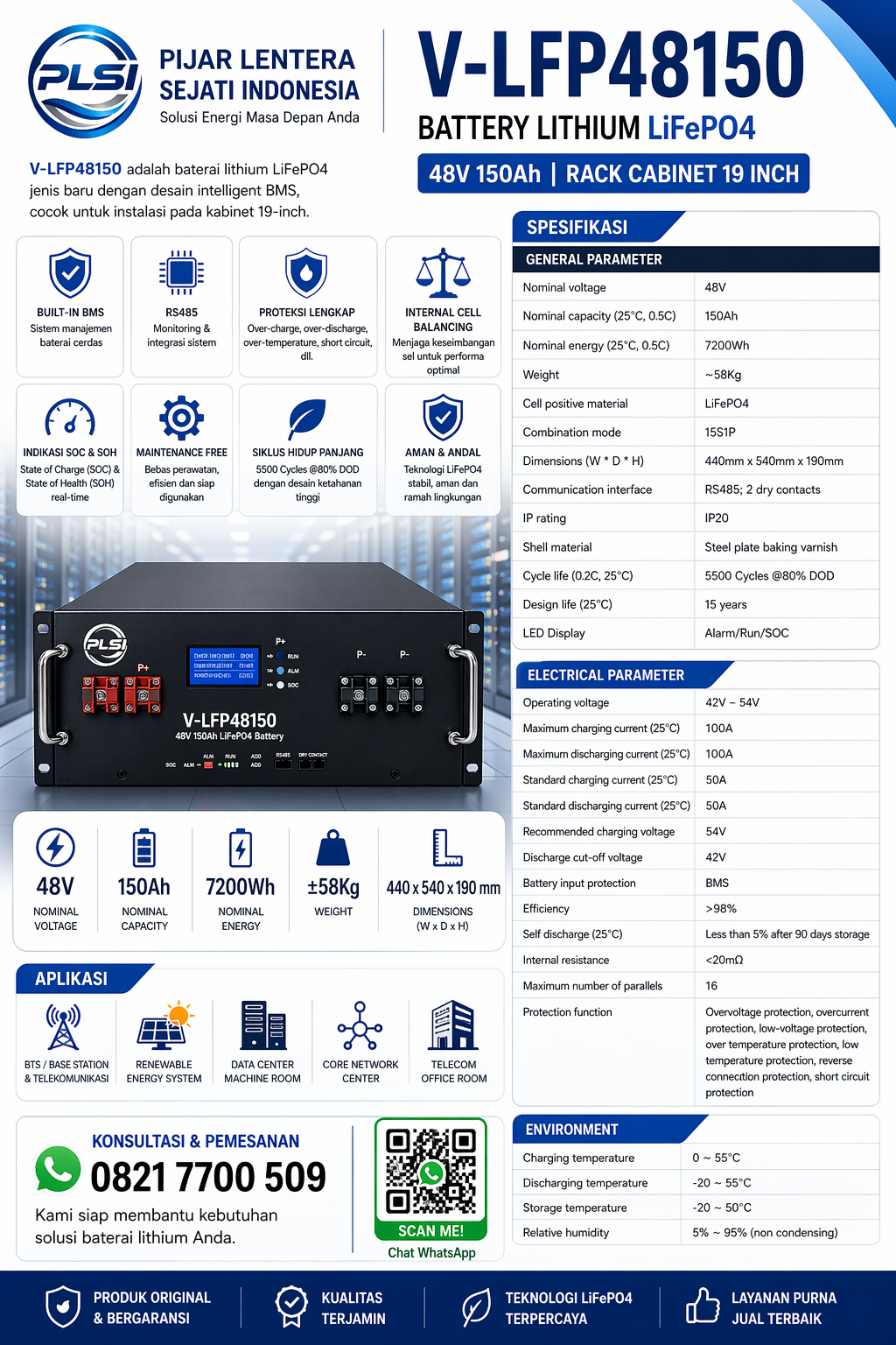 Dalam baterai seperti LiFePO4 48V, BMS terintegrasi di dalam unit baterai dan bekerja secara otomatis.