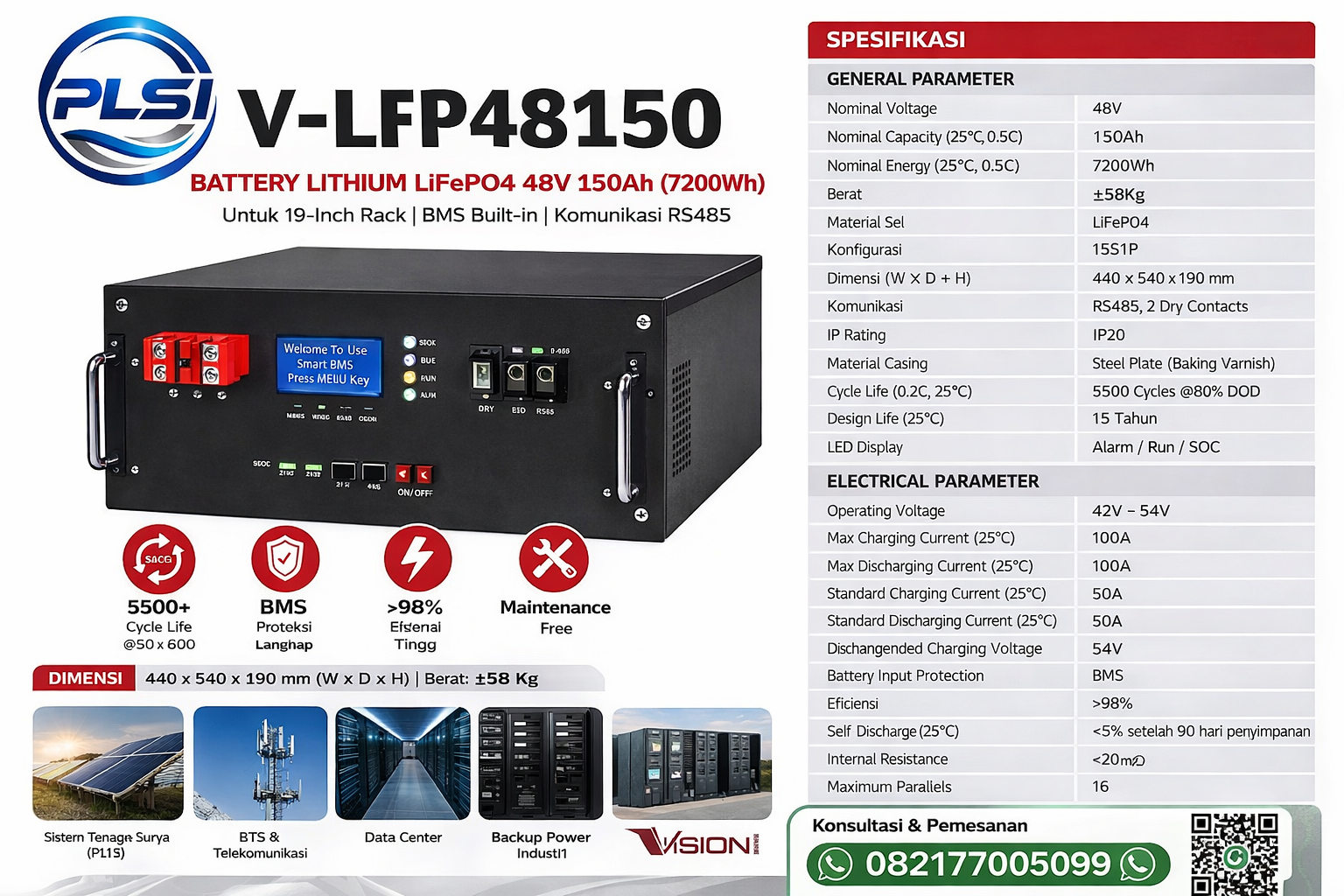 Battery Lithium LiFePO4 48v 150Ah adalah solusi penyimpanan energi modern yang semakin banyak digunakan pada sistem PLTS hybrid dan telekomunikasi. Dibandingkan baterai konvensional, teknologi ini menawarkan efisiensi tinggi, umur panjang, serta keamanan yang lebih baik. Tidak heran jika banyak pengguna solar panel, BTS, hingga industri mulai beralih ke baterai lithium sebagai standar baru energy storage system.