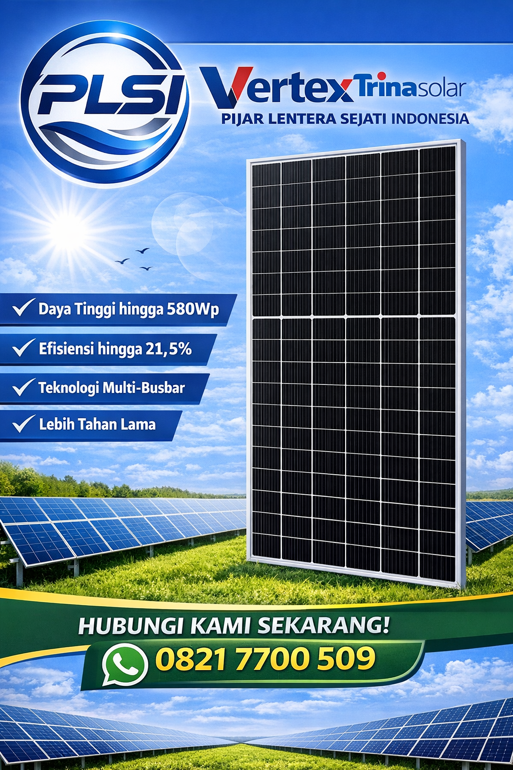 - 580Wp → lebih hemat total biaya